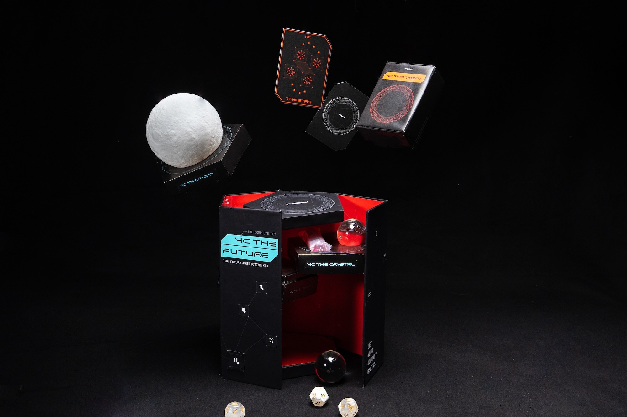 I conducted market research, developed brand positioning and materials research, and created brand identity guidelines, brand identity, package design and art direction. The products inside featured 4C The Tarot, 4C The Dice, 4C The Crystal, 4C The Moon and 4C The Guidebook.